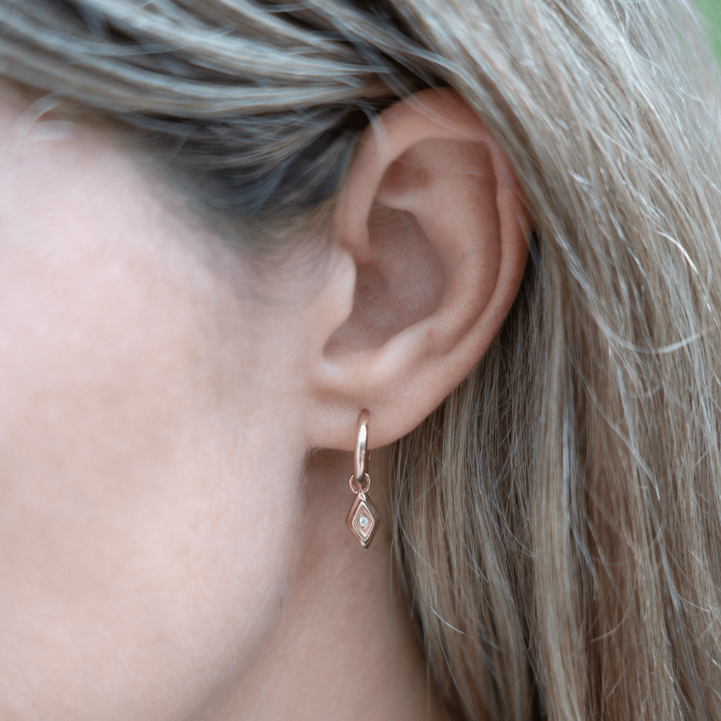 Made to wear solo or add to your stack. Available as a single or a pair (shown in 14K Yellow Gold & Natural Diamonds).