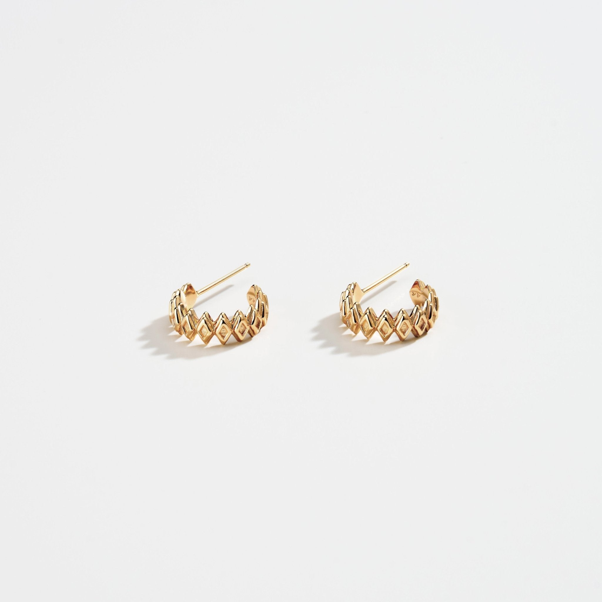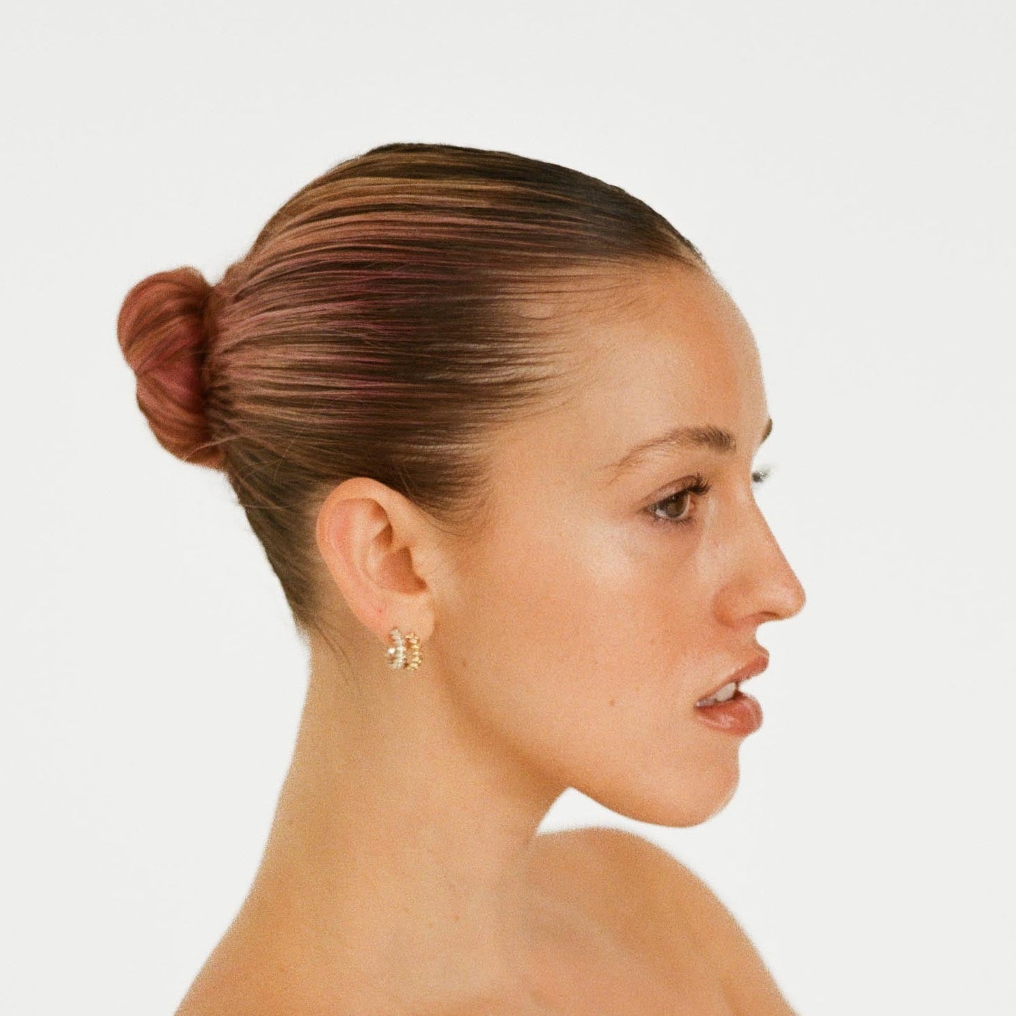 Pair the Mini Marjorie Hoops with our Classic Studs in a second piercing for a layered ear, or wear them alongside our Honors Ear Cuff for a fuller stack. The 14k gold works seamlessly with our sterling silver pieces if you prefer a mixed-metal look.